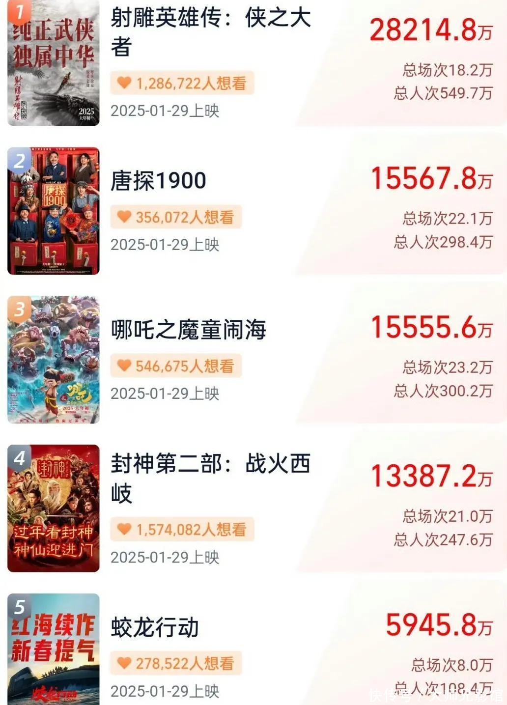 距离大除夕夜还有两天,春节档负责参预倒计时,五部电影的“干戈”也仍是参预尖锐化阶段,搏杀之猛烈果然是“杀东谈主不见血”