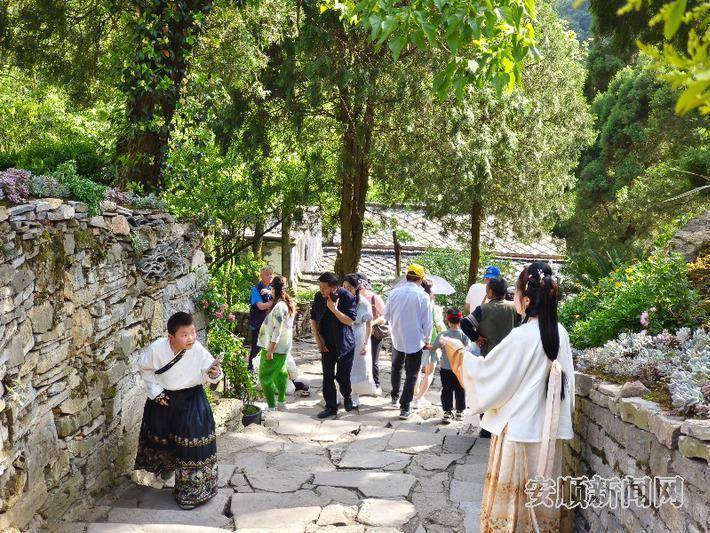 5月2日,记者走进云峰屯堡景区,走过那古朴平稳的大门,仿佛遽然开启了时空纯正。身着明朝衣饰和屯堡衣饰的NPC(非玩家脚色)穿梭来回。充满历史韵味的“石头城堡”连户成片,古朴机密的地戏、典雅大气的戏楼、古色古香的成立,还有身着宽衣大袖、笑脸亲切的屯堡孃孃……目下看到的一景一物,仿佛在确认屯堡文化的传承与发展。