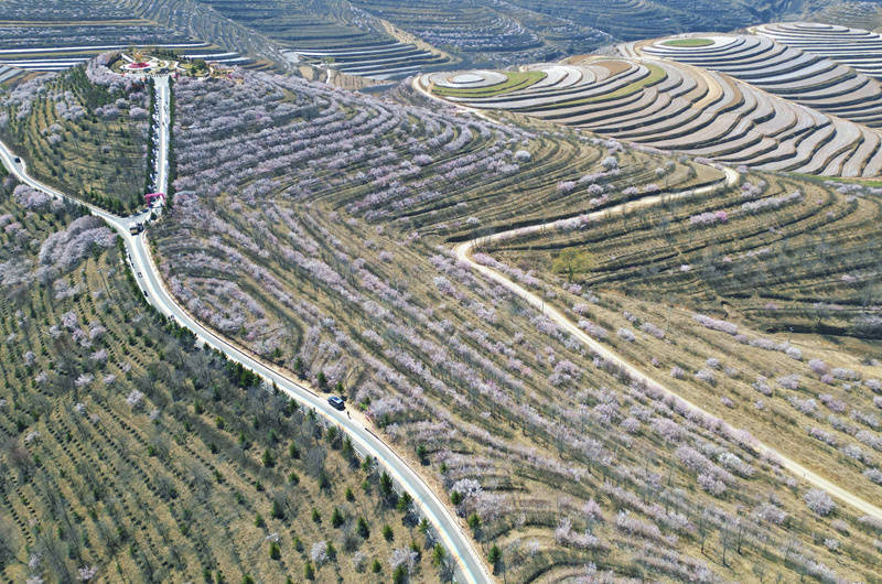 东说念主间四月芳菲尽,彭阳桃杏花洞开。跟着第二十二届宁夏六盘山山花节看重启幕和清朗节的到来,漫天彻地的山桃和山杏花竞相洞开,迷惑八方旅客慕名而至。山花相约,游东说念主如织,车辆如潮,彭阳县金鸡坪梯田公园、茹河瀑布应承区等旅游景区东说念主头攒动,吵杂超卓,说念路上车辆排起了几公里的长龙;彭阳县通达场农副居品展销区、梯田夜肆等商旅详细体购买者并排相继,到处飘溢着吵杂喜庆的氛围。