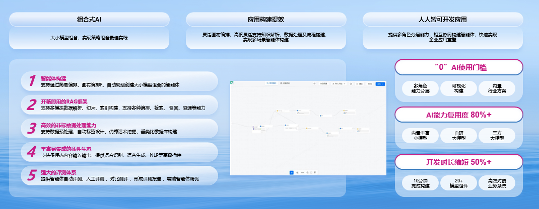 企业级大模子智能体平台,助力企业高效、低资本构建大模子运用。凭证客户需求进行大小模子组合,完了计谋组合最好实施。生动画布编排,高度生动撑捏常识领略、数据处理及经过搭建,不错完了多场景智能体构建;还不错提供多扮装分层才气,相互协同构建智能体,快速完了企业运用重塑。