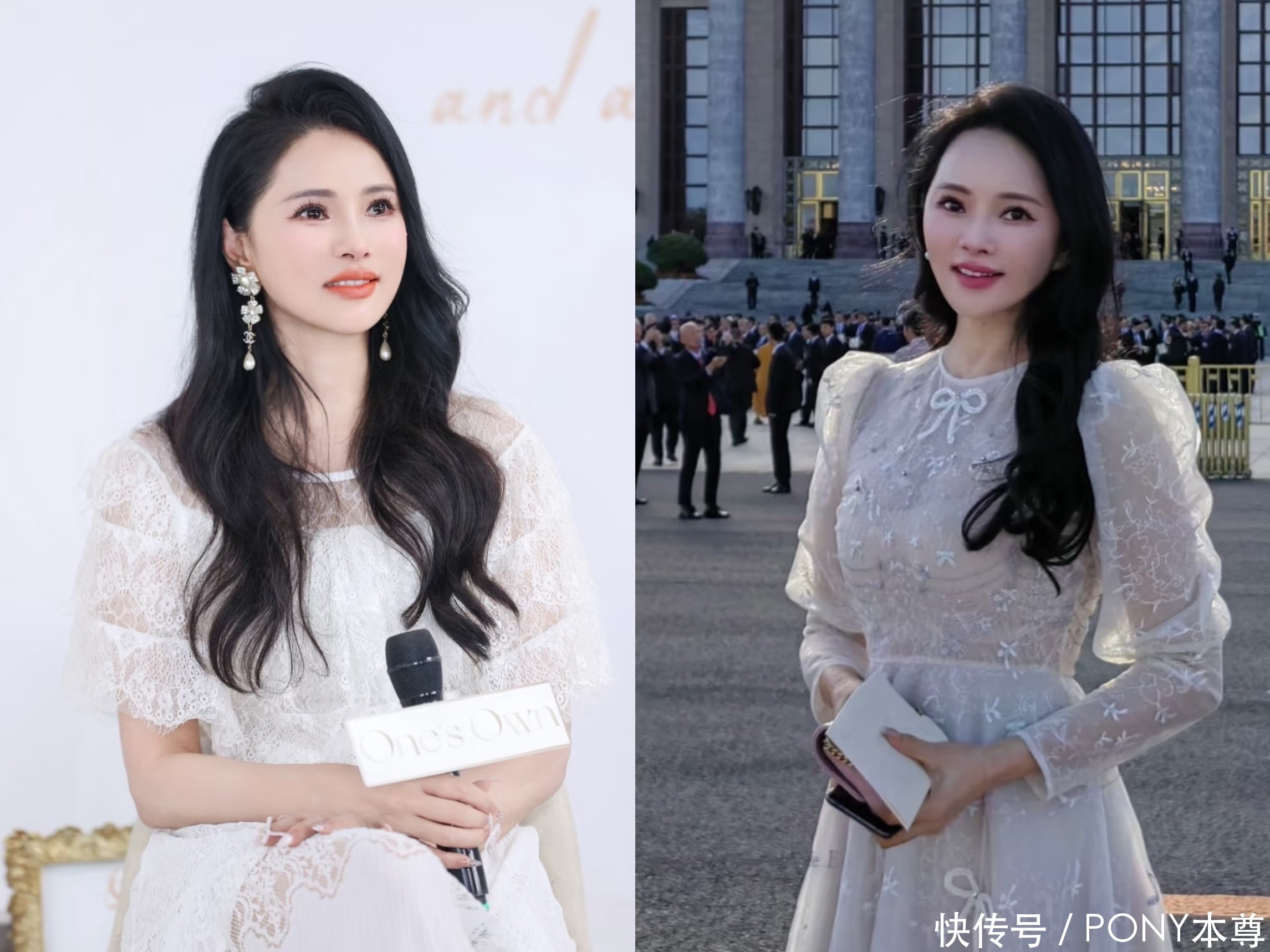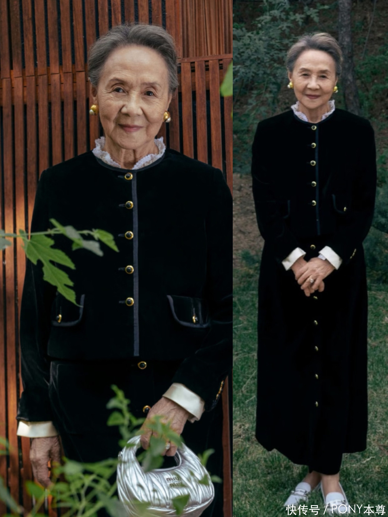 也可像80多岁的吴彦姝一样,只是把白色蕾丝四肢领口的点缀,含蕾丝量未几,但照旧让她显得优雅和缓。
