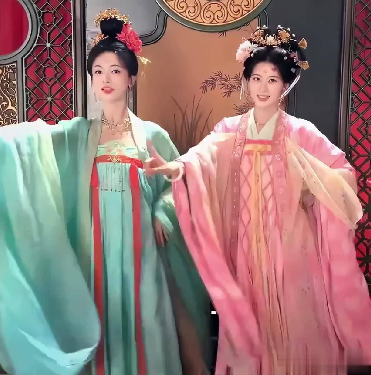行动以盛唐为配景的剧集,山河为聘天然少不了符号性的唐风造型。吴谨言身着翠绿襦裙搭配大红绢花的造型颇具视觉冲击力,好意思艳的碰撞未必协调。而赵昭仪饰演的女副角则以粉衣配粉花的造型亮相,两东说念主同框比心的画面号称视觉盛宴,一个明艳张扬,一个甜好意思可东说念主。天然赵昭仪的剧透照未几,但与吴谨言片场互动的温馨画面已让不雅众对她们的敌手戏充满期待。从造型配色来看,粉色系着装似乎示意着其正面形象,不外若能颠覆套路以甜好意思外饰演绎邪派,大略会带来更多惊喜。