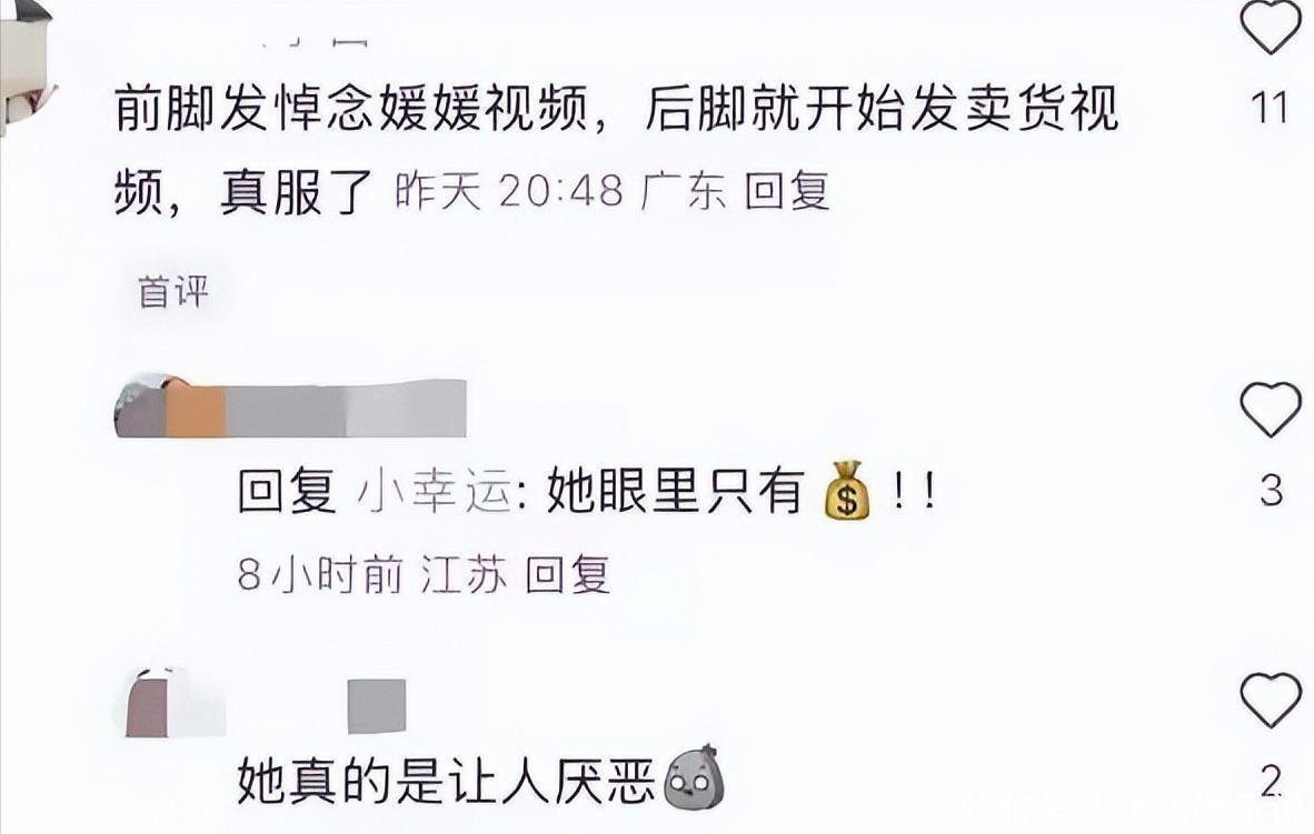 背面刚发完吊唁视频,紧接着就发了个带货视频,这是什么操作?嬉皮笑容就算了,视频有热度了又接着发了带货视频,吃相有点太出丑了。