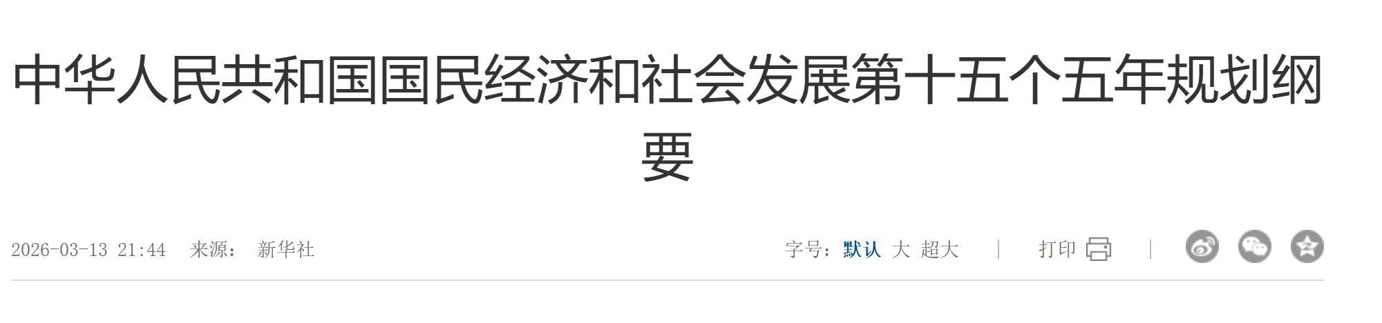 中华东谈主民共和国国民经济和社会发展第十五个五年策动选录。